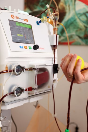 Afereza to nowoczesna metoda oczyszczania krwi, w której chorobotwórcze substancje są selektywnie usuwane za pomocą specjalnych filtrów lub kartridży adsorpcyjnych. Bezpieczeństwo i skuteczność aferezy są naukowo udowodnione, uznawane przez światowe towarzystwa medyczne i opisane w standardach aferezy w leczeniu wielu chorób:
